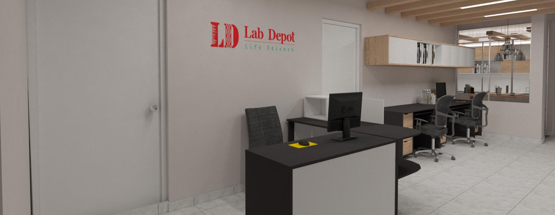 Lab Depot es una compañia peruana que distribuye y comercializa suministros de laboratorio de alta calidad. Se solicitó una remodelación de oficinas. Se aprovechó el espacio para instalar modernas oficinas. En la recepción se colocó un falso cielo de melamina con textura de madera y acrílico iluminado.